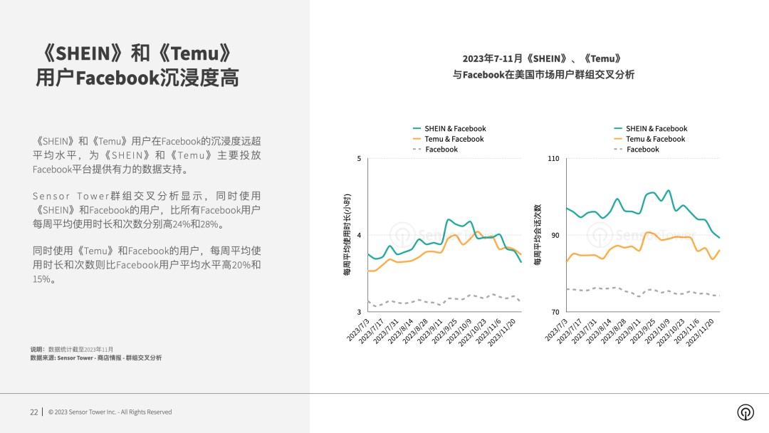 《SHEIN》和《Temu》用户使用 Facebook 沉浸度高