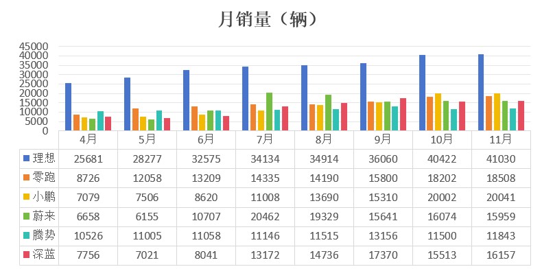 數據來源:各大車企發佈的數據