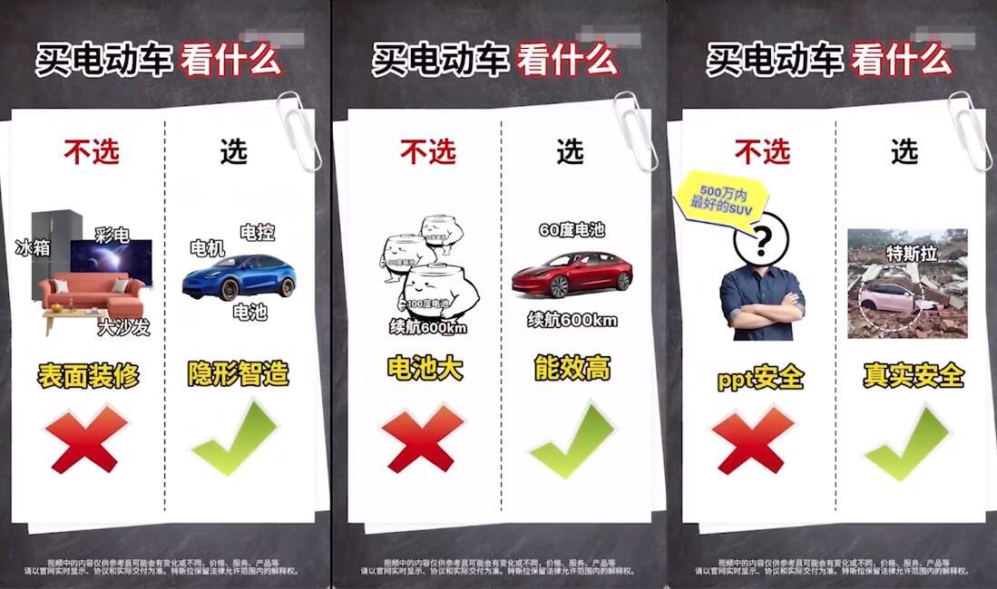 12 月 29 日,特斯拉在抖音上发布了一段名为《购买电动汽车时要看什么》的短视频,嘲讽一些车型附带的冰箱、彩色电视和大沙发都是肤浅的装饰。