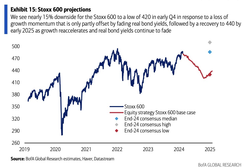 美銀預計未來 8 個月歐洲斯托克 600 指數將跌超 15%。