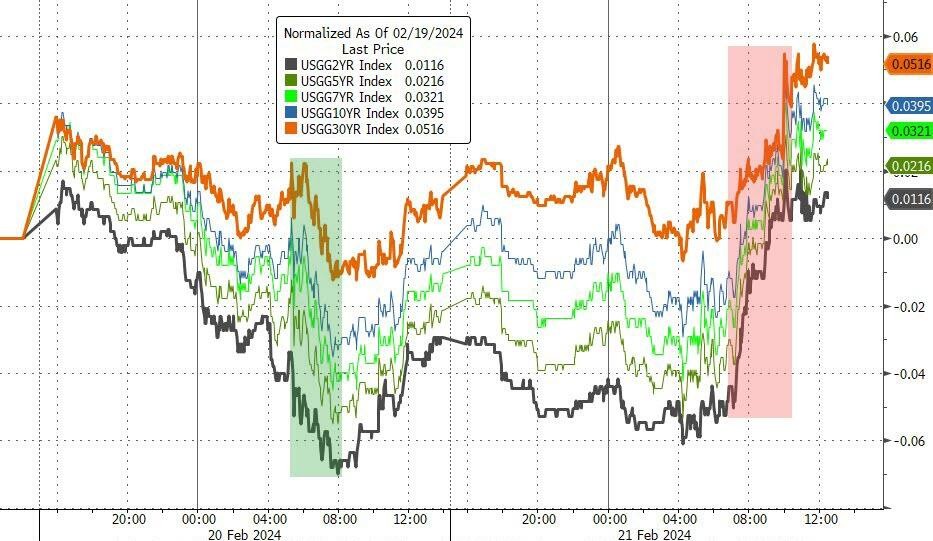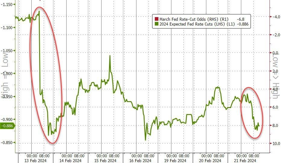 午盤公佈的美聯儲 1 月末會議紀要顯示,聯儲官員擔心過快降息、擔心通脹下降停滯。有 “新美聯儲通訊社” 之稱的記者 Nick Timiraos 此後發文稱,紀要顯示,大多數聯儲官員擔心的是過早降息和價格壓力根深蒂固,而不是高利率保持過久,僅兩人指出長期高利率的風險。