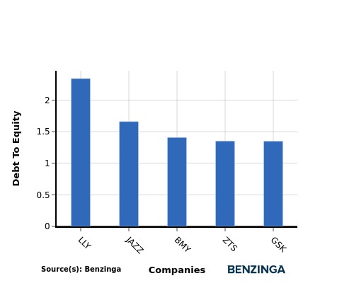 When examining Eli Lilly and Co in comparison to its top 4 peers with respect to the Debt-to-Equity ratio, the following information becomes apparent: