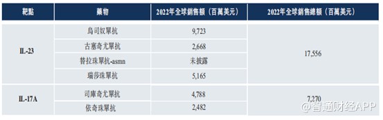 作為銀屑病治療的第二代生物藥,IL 抑制劑的賽道並不擁擠,向來由跨國藥企佔據大多數市場份額。在 IL-17 及 IL-23 兩個常見銀屑病治療靶點中,烏司奴單抗所靶向的 IL-23 在銀屑病發病機制中處於 Th17 信號通路的上游,靶向 IL-23(包括 IL-12/23) 可實現更深和更持久的炎症緩解,在臨牀研究中顯示出更優越的長期療效及安全性。