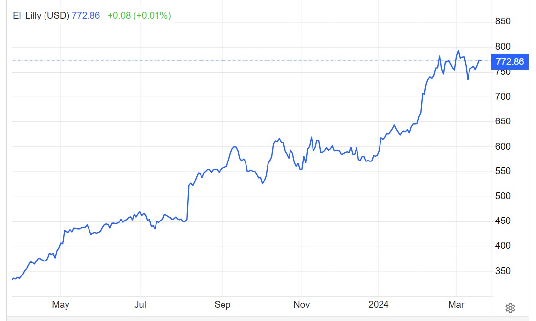 隨着 Zepbound 與 Wegovy 這兩大減肥藥產品供應遠遠跟不上全球無比龐大的需求,伴隨而來的是這兩家公司股價在二級市場屢創新高,禮來股價 2024 年以來在美股漲超 32%,助力禮來總市值一舉登頂全球上市公司市值前十寶座;同期諾和諾德 ADR 在美股市場漲超 26%,目前兩者均徘徊在歷史最高位附近,隨時可能掉頭下行。