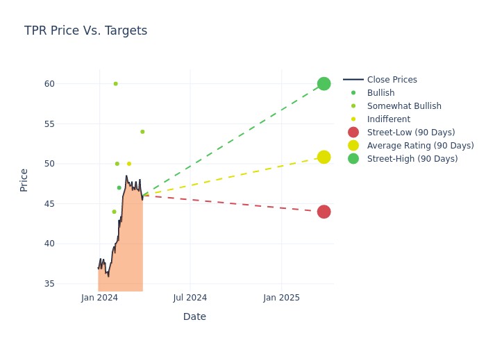 - Rating: Analysts assign qualitative assessments to stocks, ranging from 'Outperform' to 'Underperform'. These ratings convey the analysts' expectations for the relative performance of Tapestry compared to the broader market.
