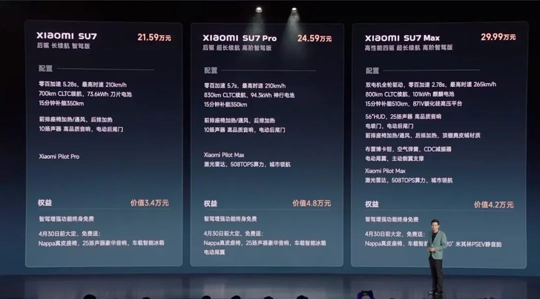 21.59 萬元,小米 SU7 起售價公佈。這個自小米宣佈造車以來,所有人最好奇的謎題終於被揭曉。
