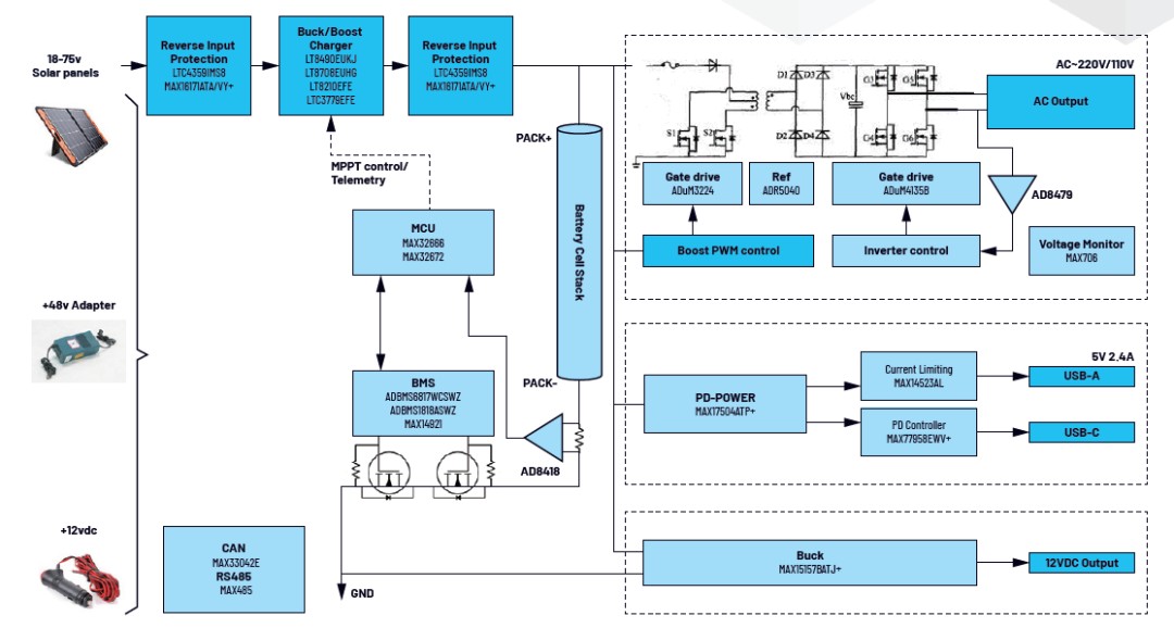 ADI 推出了在能源方面的应用方案和产品。这些方案包括工业能源 ESS 应用解决方案、便携储能应用解决方案、飞轮储能设备解决方案、太阳能模拟器应用解决方案、5-10KW 家庭储能电源应用解决方案、太阳能逆变器应用解决方案和车载充电(OBC)系统方案。如需了解详细信息,请联系 ADI。