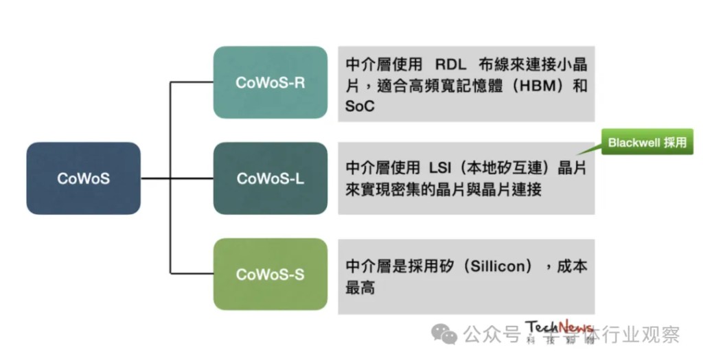 作為單芯片最忠實的支持者,英偉達過去多年裏一直都是通過工藝和架構改善來提高芯片的性能,然而在 B100 上,英偉達也事實上採用了行業主推的 Chiplet 設計方式,用自有的 NV-HBI(Nvidia High Bandwidth Interface)把兩個突破了 reticle 極限的兩個芯片連接起來,按照 technews 所説,在這背後倚仗的是台積電的 CoWoS 先進封裝工藝。