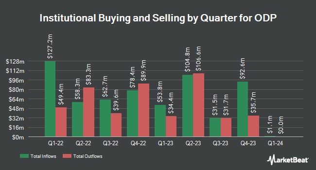 其他大型投資者也調整了他們對該公司的持股。Pacer Advisors Inc.在第四季度增加了其對 ODP 的持股比例,增持了 49.9%。Pacer Advisors Inc.現在擁有 1,481,692 股該特殊零售商的股票,價值 83,419,000 美元,比上一季度增持了 493,233 股。CX Institutional 在第四季度增加了其對 ODP 的持股,增持了 0.3%。CX Institutional 現在擁有 69,795 股該特殊零售商的股票,價值 3,929,000 美元,比上一季度增持了 204 股 格拉迪厄斯資本管理有限合夥企業在第三季度增加了對 ODP 的持股,持股比例增長了 94.6%。格拉迪厄斯資本管理有限合夥企業現在擁有 722 股這家專業零售商的股票,價值 33000 美元,購買了額外的 351 股。美國世紀公司在第三季度增加了對 ODP 的持股,持股比例增長了 11.7%。美國世紀公司現在擁有 524628 股這家專業零售商的股票,價值 24212000 美元,購買了額外的 54836 股。最後,德意志銀行在第三季度增加了對 ODP 股票的持股比例,增長了 12.6%。德意志銀行現在擁有 17844 股這家專業零售商的股票,價值 824000 美元,購買了額外的 1991 股。對沖基金和其他機構投資者擁有該公司股票的 99.56%。