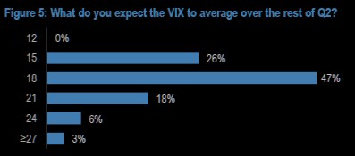 摩根大通近期進行的一項調查也顯示,絕大多數受訪者都預計今年剩餘時間,VIX 波動率指數會大幅上漲,這表明投資者擔憂未來市場會更加波動、風險加大。
