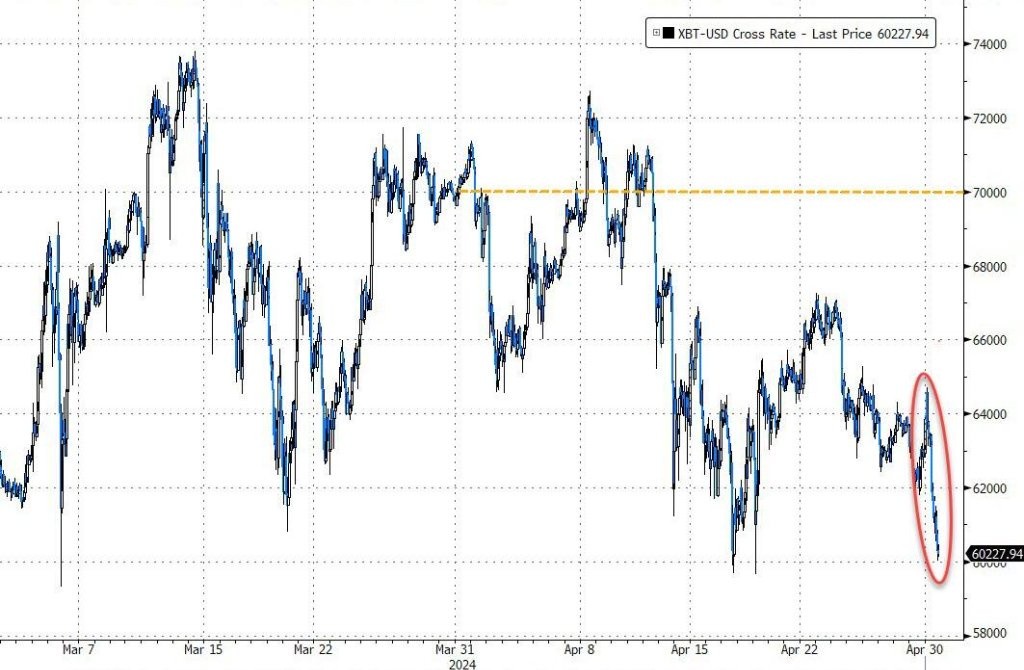 隔夜美國股債雙殺,國際原油繼續下行,黃金和比特幣也延續跌勢。