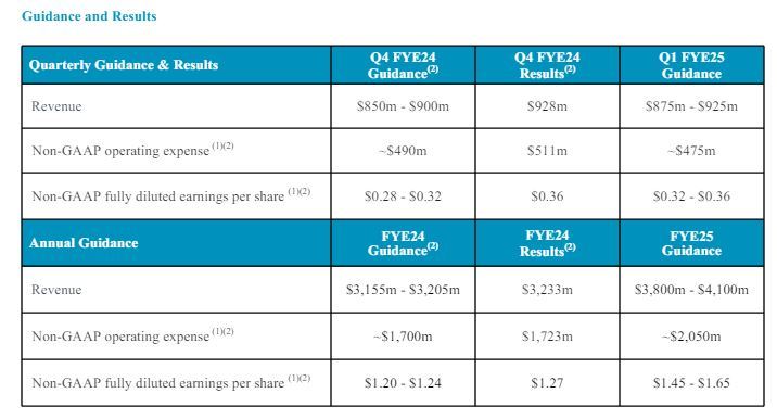 下季指引超预期,但对 2025 财年收入预测勉强达标,引发行业资本支出担忧
