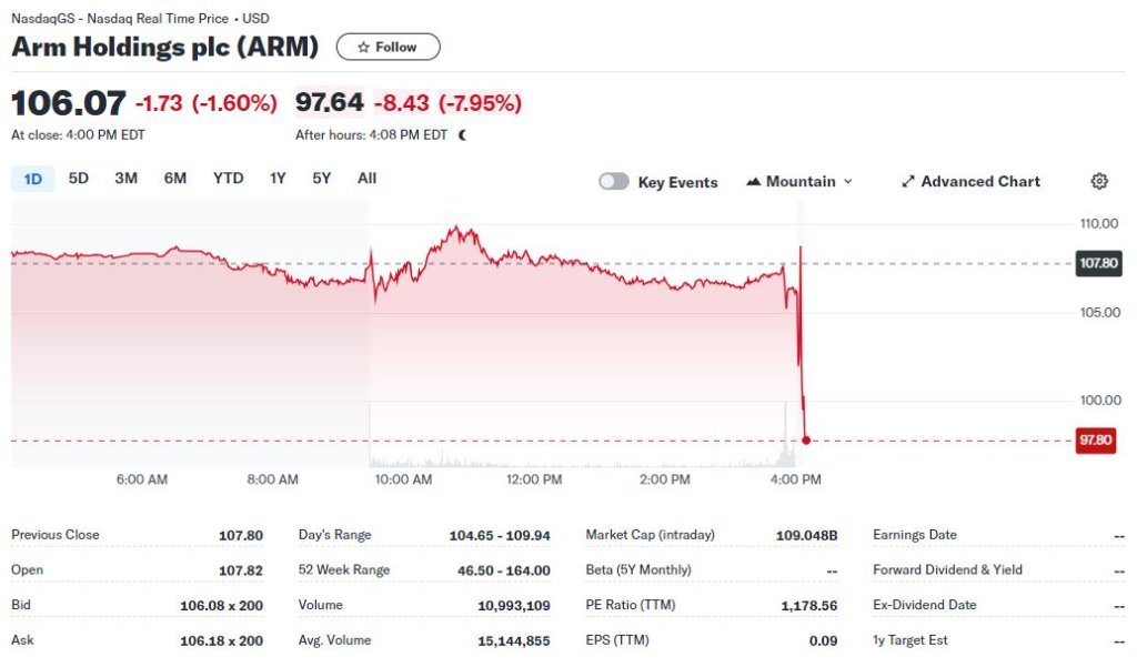Arm Q1 and next quarter guidance are positive, but the full-year outlook is lukewarm, with a 10% drop in after-hours trading | Financial Report News