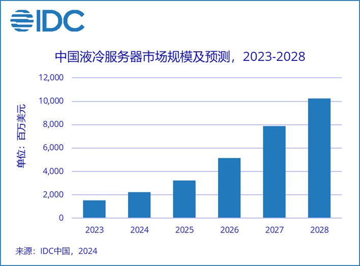 知名機構 IDC 預計,2023-2028 年,中國液冷服務器市場年複合增長率將達到 45.8%,2028 年市場規模將達到 102 億美元。IDC 數據顯示,基於行業需求和政策推動,2023 年中國液冷服務器市場規模進一步加大,並且參與液冷生態體系的合作伙伴也越來越豐富,表明市場對於數據中心液冷解決方案的態度是非常積極。隨着中國人工智能企業和組織對智算中心無論是建設要求還是算力供給需求越來越高,導致此類數據中心的 IT 設備能耗大幅上升,更加需要高效的液體冷卻系統來維持適宜的操作温度,否則將對大模型產品的週期管理和運維難度產生巨大挑戰。