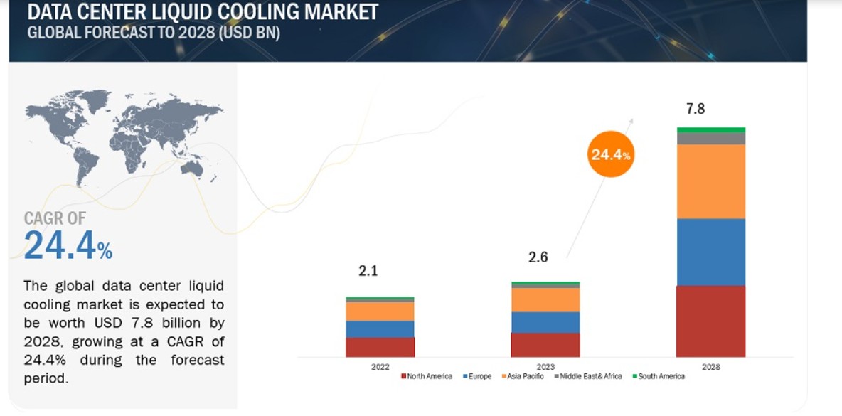 知名機構 Markets And Markets 研究報告顯示,預計全球數據中心液體冷卻市場將從 2023 年的 26 億美元增長到 2028 年的至少 78 億美元,在預測期內的複合年增長率為 24.4%。Markets And Markets 表示,由於人工智能服務器、邊緣計算和物聯網 (oT) 等設備的發展,需要緊湊而有效的冷卻解決方案,液冷優點則是能夠通過冷卻小型設備和小型服務器,有效地處理具有挑戰性的情況下的大批量數據。總體而言,現代數據中心處理天量級別數據的強勁需求之下,數據中心液冷市場主要受到提高冷卻效率、節能、可擴展性、可持續性和更高性能 GPU 等硬件要求的驅動。