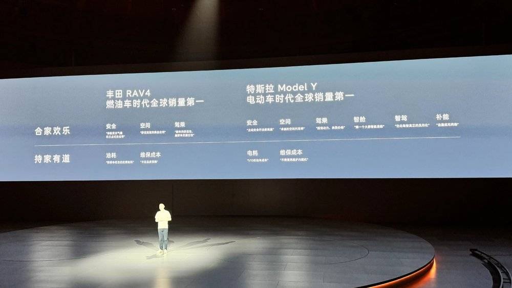 正如前文展示的發佈會 PPT 上,L60 對標的產品不僅有 Model Y,還有一汽豐田的 RAV4(中文名 “榮放”)。