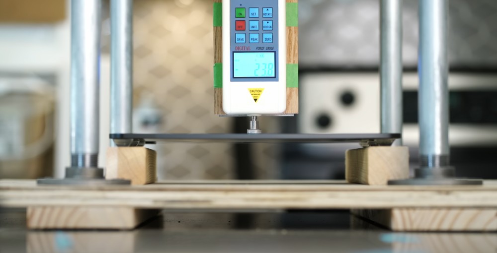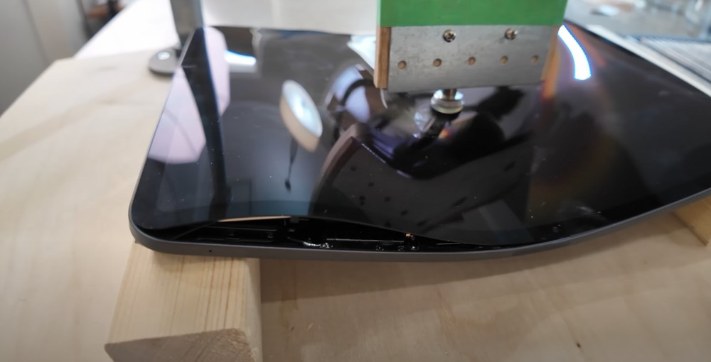 在施加的重量來到 70 磅(約 31.75 千克)時,iPad Pro 終於「不堪重負」地出現了較大程度的彎折,在重量達到 95 磅(約 43.09 千克)時發生開裂。