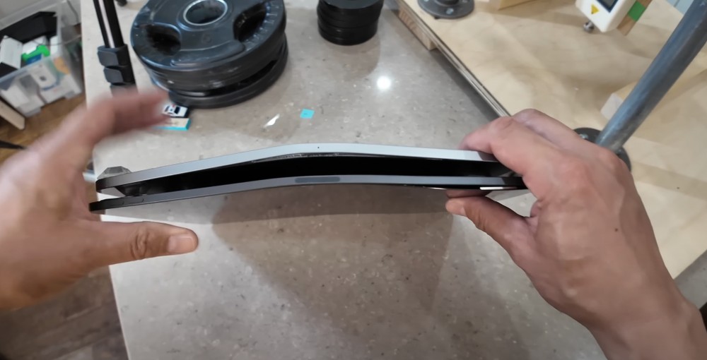 不過,主播也指出,在重量來到 70 磅時,22 款 iPad Pro 的彎曲程度要比 24 款更小。