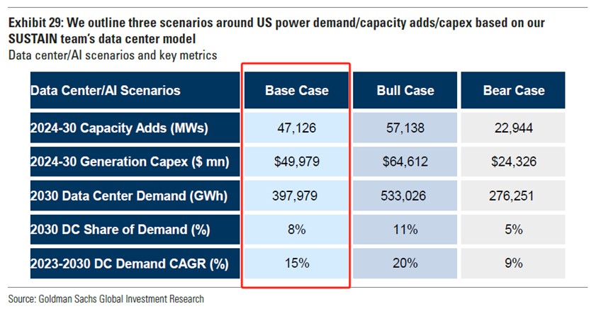 AI 數據中心對電力需求暴增的報告已經有很多了,高盛這次再給了新的預測。