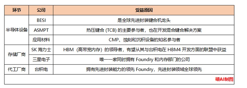 值得注意的是,該技術目前仍然在開發階段,花旗預測會在 2027 年迎來爆發。作為先進封裝未來的趨勢,3D 封裝中新增的「混合鍵合」技術,將為半導體設備廠商(鍵合機廠商等)、存儲供應商和晶圓代工廠商帶來新的機遇。