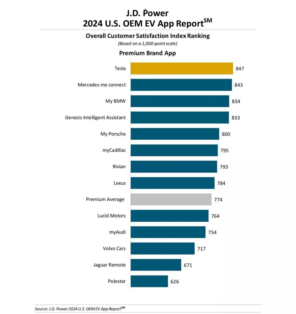 Tesla mobile app tops J.D. Power’s OEM App Report