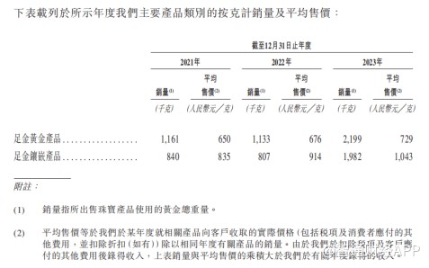 In 2023, the sales volume of Lao Pu Gold's solid gold products reached 2199 kilograms, a year-on-year increase of 94.1%; the sales volume of gold-inlaid products reached 1982 kilograms, a year-on-year increase of 145.6%. In terms of average selling price, in 2023, the average selling price of solid gold products was 729 yuan/gram, a year-on-year increase of 7.8%; the average selling price of gold-inlaid products reached 1043 yuan/gram, a year-on-year increase of 14.1%.