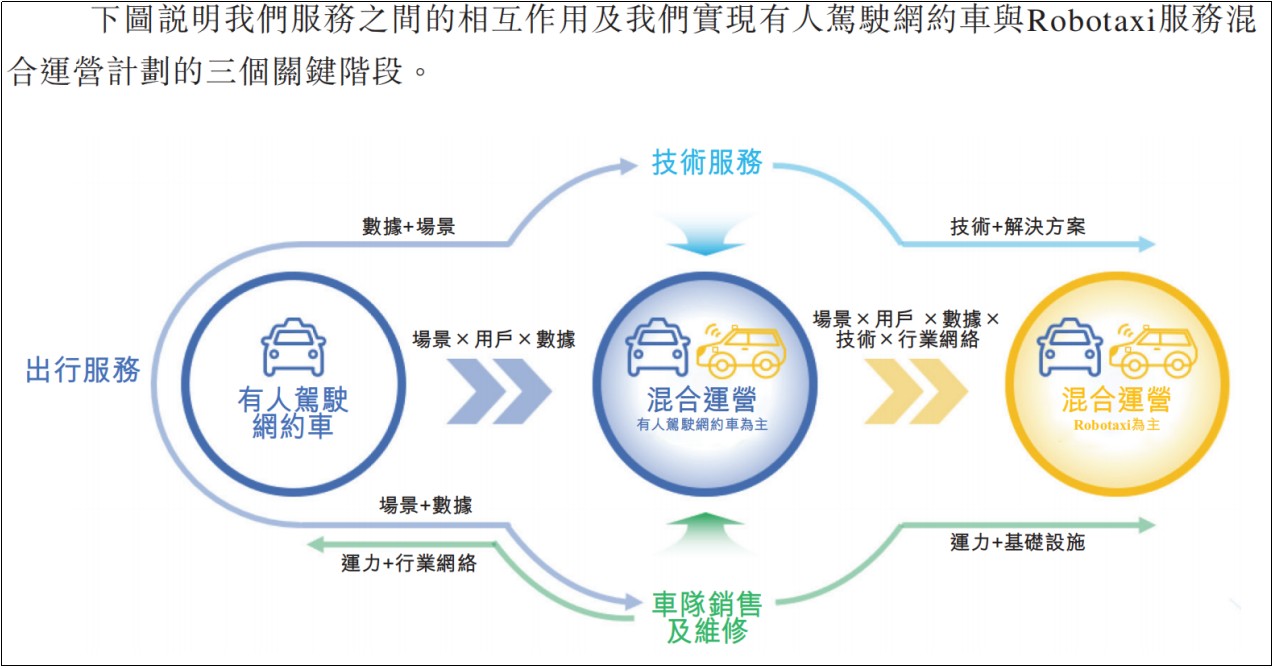 The first phase aims to achieve a mix of human-driven ride-hailing and Robotaxi services in key areas of China, with ride-hailing as the main focus. The second phase will further promote the mass production of Robotaxi vehicles and drive company and industry partners to achieve large-scale production of Robotaxi vehicles. In the third phase, entering a new development cycle, the percentage of Robotaxi vehicles in the travel service fleet will rapidly increase, helping to significantly increase the company's market share in the Chinese travel service market and explore global markets with scale and technological advantages.