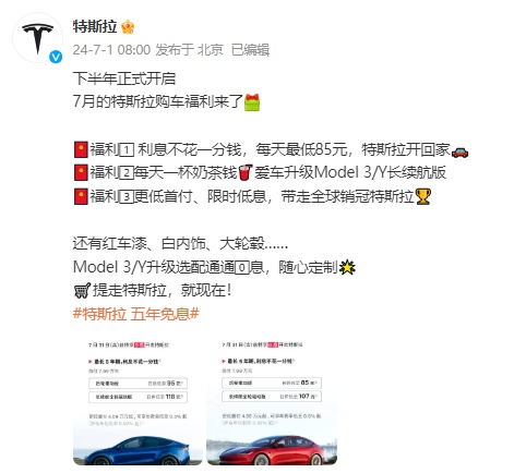 今天早上的一條微博,似乎也微妙地透露了一些銷量信息,特斯拉在 “推出 5 年 0 息” 的購車政策微博中,表示 “6 月特斯拉銷量再創新高”,