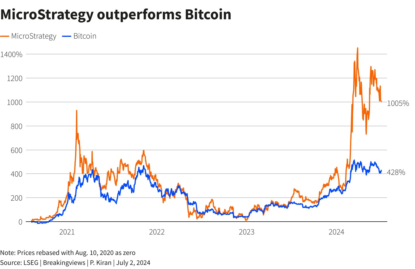 TORONTO, July 2 (Reuters Breakingviews) - The $26 bln firm’s shares have leapt on a bitcoin buying binge, funded by bonds that can turn into stock. Unlike GameStop’s ragtag punters, MicroStrategy depends on hedge funds such as Citadel piling in. Thing is, they rely less on a rising share price than a wildly volatile one.