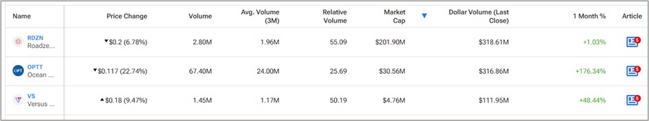 On July 3, VS had a Dollar Volume of $111.95 million, while the share price gained by 9.5%. VS shares spiked on July 1 after the company named a new interim CEO and announced its strategic restructuring plans. The appointment follows a series of resignations by the company’s CEO and Director, CFO, Chairman, and two independent directors. Since July 1, VS shares have exploded over 61%.