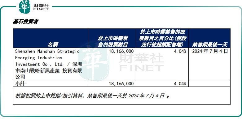 根據此前公告,2024 年 7 月 4 日是速騰聚創基石投資者解禁日期。其中,深圳市南山戰略新興產業投資有限公司解禁股數為 1816.6 萬,佔已發行股數 4.04%。