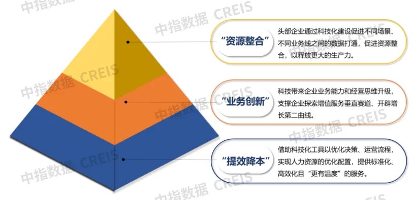 Technological construction is an important option for property companies in the era of industrial internet to reduce costs, increase efficiency, and innovate business. With the widespread penetration of smart technology at the organizational, business, and strategic levels of enterprises, on the one hand, it will drive the innovative development of enterprises from three dimensions: first, technology applications bring about improved operational efficiency for enterprises; second, digital elements bring about the upgrading of business capabilities and management thinking for enterprises; third, the network effects brought about by technological construction promote the integration of enterprise service ecosystem resources; on the other hand, based on smart technology and relying on the unique advantages of being close to "people," "scenes," and "objects," property companies will put forward new requirements for their talent demand and talent structure in the process of pursuing innovative development.