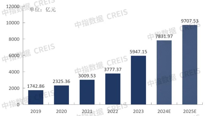 Under the background of refined urban management and the continuous advancement of the "delegating regulation and optimizing services" reform, the urban governance public service market continues to open up, the urban service market space continues to be released, and the market size continues to grow. According to the China Index Research Institute's estimation, by 2023, the market space for property service companies to expand urban services is approximately 594.7 billion yuan. In recent years (2019-2023), the compound annual growth rate has reached 35.91%. It is expected to increase to 970.8 billion yuan by 2025, with a compound annual growth rate of about 27.76% from 2023 to 2025.