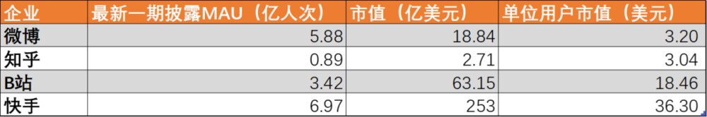 Taking Weibo, which has the highest proportion of advertising business, as an example, limited by the shortage of the business chain, Weibo's ARPU is approximately around 0.7 yuan. According to QuestMobile data, the average usage time of Weibo is about 45% of Kuaishou's, with an economic output of 0.012 yuan per minute, roughly representing the economic value of pure advertising business.