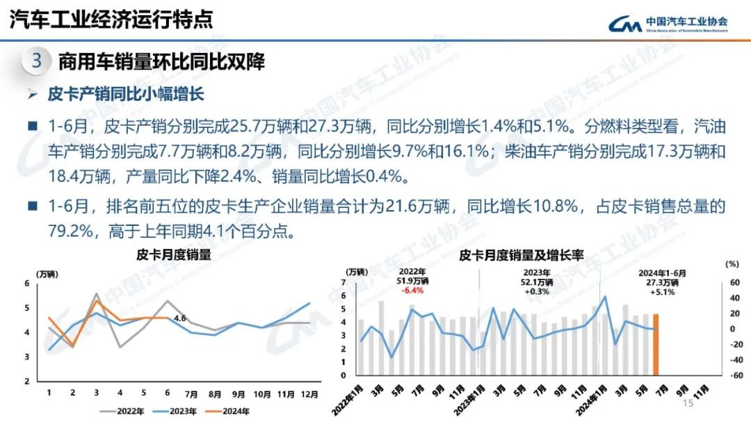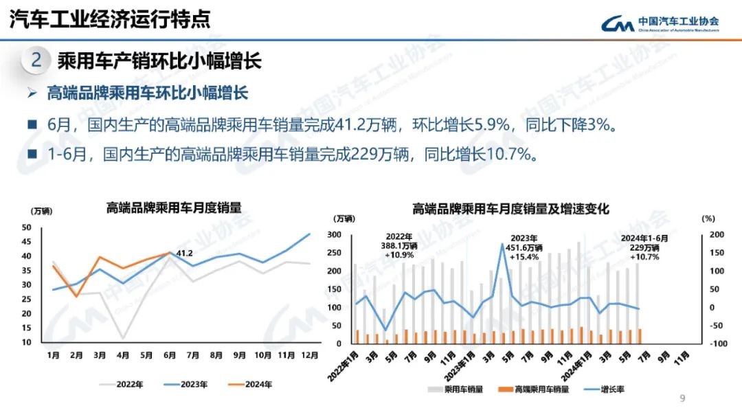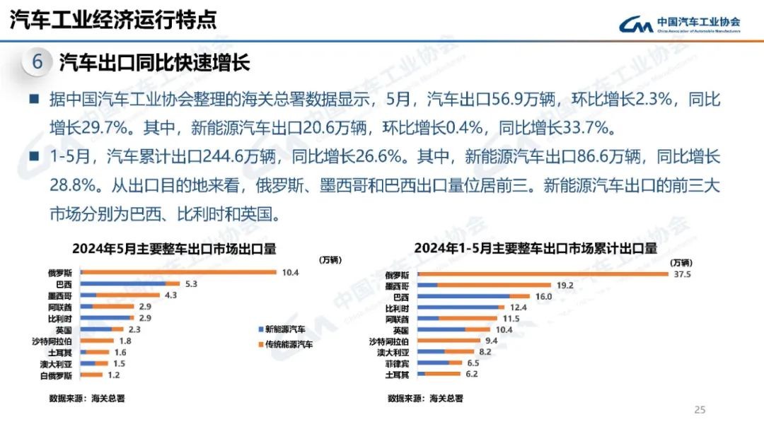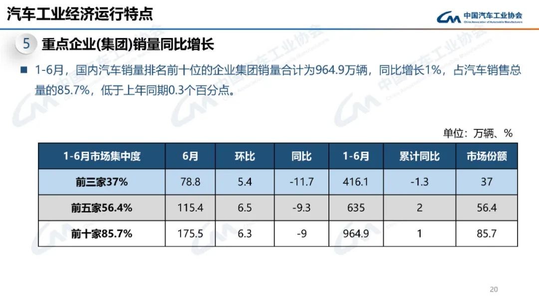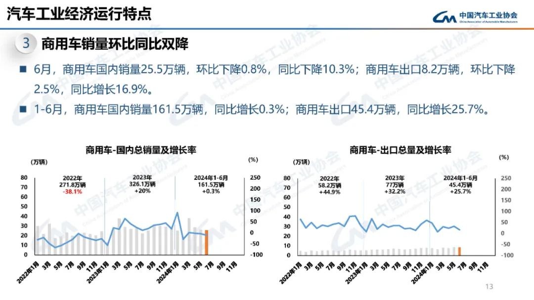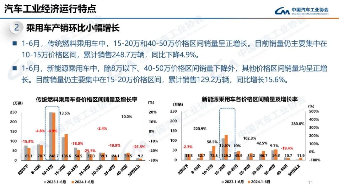 According to the analysis of the China Association of Automobile Manufacturers, since the beginning of this year, the main economic indicators of the automobile industry have shown a growth trend. Due to the relatively low base in the same period of the first quarter, the growth rate exceeded double digits, and the overall growth rate slowed down in the second quarter compared to the first quarter. In the first half of the year, domestic sales increased slightly year-on-year, with terminal inventory higher than normal levels; automobile exports maintained rapid growth, making a significant contribution to driving overall market growth, while the export growth rate of new energy vehicles slowed significantly; the production and sales of new energy vehicles continued to grow rapidly, with a steady increase in market share. According to the association's statistics, as of the end of June this year, the cumulative production and sales of domestically produced new energy vehicles exceeded 30 million units; Chinese brand passenger car market share exceeded 60%, achieving an upward breakthrough.