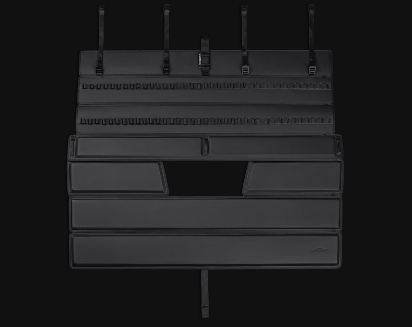 The tailgate shield appears to be primarily useful for those transporting bikes or other goods that may need to be stored over the top and outside of the tailgate, though it also features tons of internal space to fasten objects to. It also comes with a combination lock carabiner.
