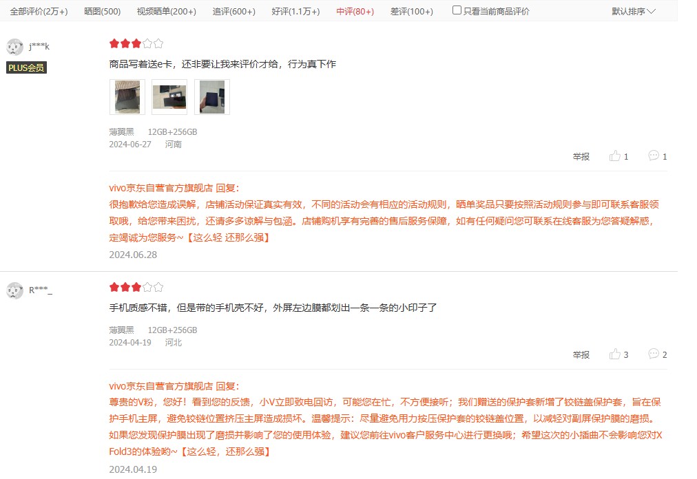 Based on this, manufacturers represented by Xiaomi and OPPO are more focused on imaging rather than thinness. Taking the vivo X Fold3 as an example, although there are over 180 negative reviews on the JD platform, few users complain about the imaging quality of this model.