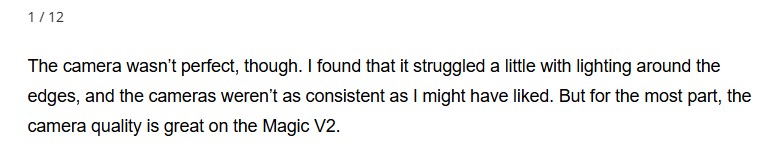 In the overseas market, reviewer Christian de Looper mentioned that although the camera quality of Honor Magic V2 is generally good, it not only has poor edge lighting performance but also fails to reach the level of camera photography.