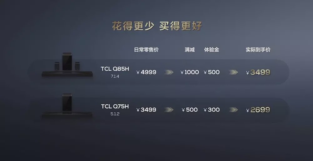 TCL launches two new soundbar products: Q85H priced at 3499 yuan, Q75H priced at 2699 yuan