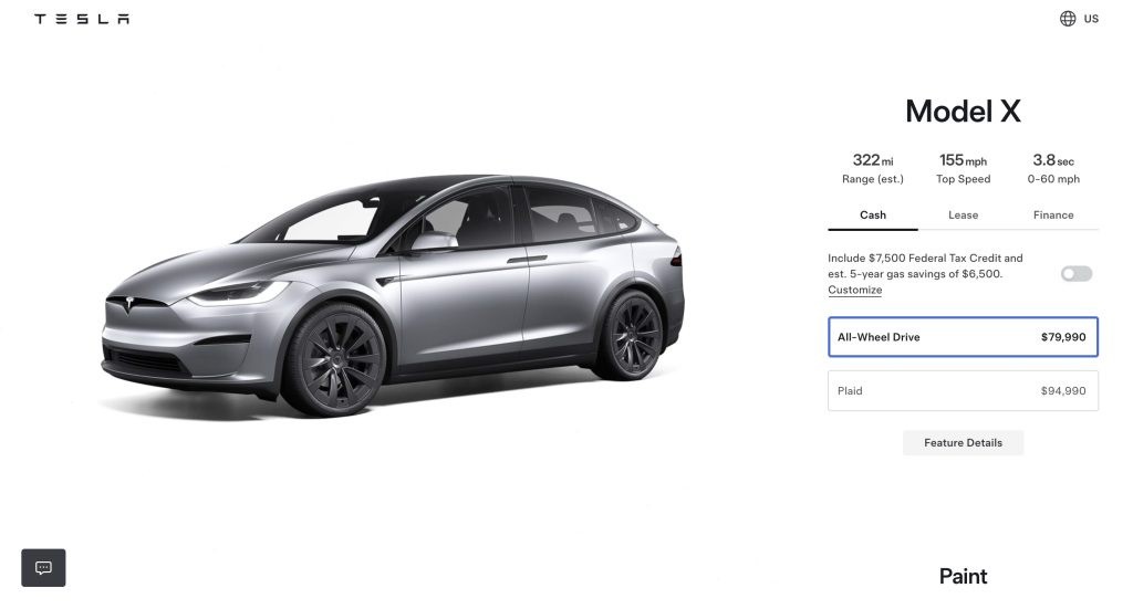 The Tesla Model X AWD, on the other hand, now starts at $79,990 before options. This means that the Model X AWD still qualifies for the federal tax credit, as its price is below the IRA’s $80,000 cap for SUVs. The Tesla Model X Plaid, which features a 0-60 mph time of 2.5 seconds, now starts at $94,990 before options.