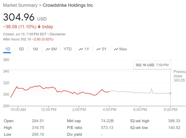 On Friday local time, during the early trading of the US stock market, CrowdStrike's stock price plummeted by 14% at one point, narrowing to 11.10% by the time of publication (morning of July 20th).