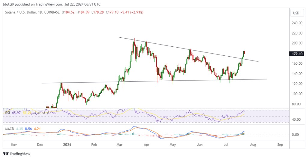 值得注意的是,Solana 在 3 月份突破了年內高點 200 美元以上,而比特幣則在 73,000 美元以上創下了新的歷史高點。