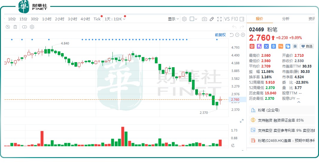 On July 26, FENBI (02469.HK), known as the "first stock of Internet vocational education", saw its stock price surge significantly, closing up 9.09% at HKD 2.76.