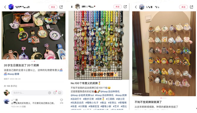 根據中國社會科學院財經戰略研究院發佈的《潮玩產業發展報告(2023)》顯示,消費者購買潮玩除了收藏價值,還看重的就是個性和態度表達,以及與他人進行社交分享。Keep 獎牌通過 IP 聯名,將潮流 IP 通過特定設計製作成一塊好看又精緻的獎牌,在一定程度上具備了 IP 周邊產品的意義,顏值至上、悦己消費是 Keep 獎牌深受 IP 粉絲喜歡的原因之一,而同時,因為每一塊獎牌都需要付出汗水、努力和時間,這種附加了自驅自律精神的運動屬性,也為用户帶來了成就感和自信心,讓獎牌帶來的情緒價值進一步拉滿。