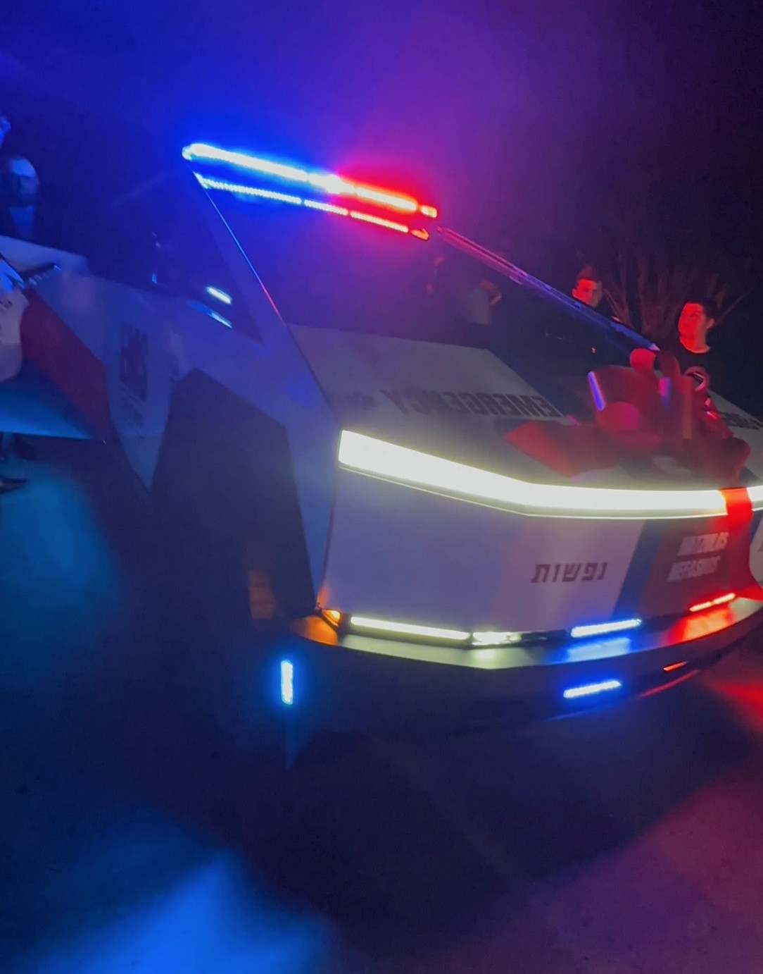 Originally posted on Reddit in separate posts on Friday and Monday, the wrapped EMS Cybertruck was seen in New Jersey, sporting a red, white, and blue wrap, a siren on top, and text detailing that it’s an emergency vehicle. The Cybertruck was reportedly donated to the ambulance service Hatzulas Nefashos in Lakewood, and it features additional text in both Hebrew and English.