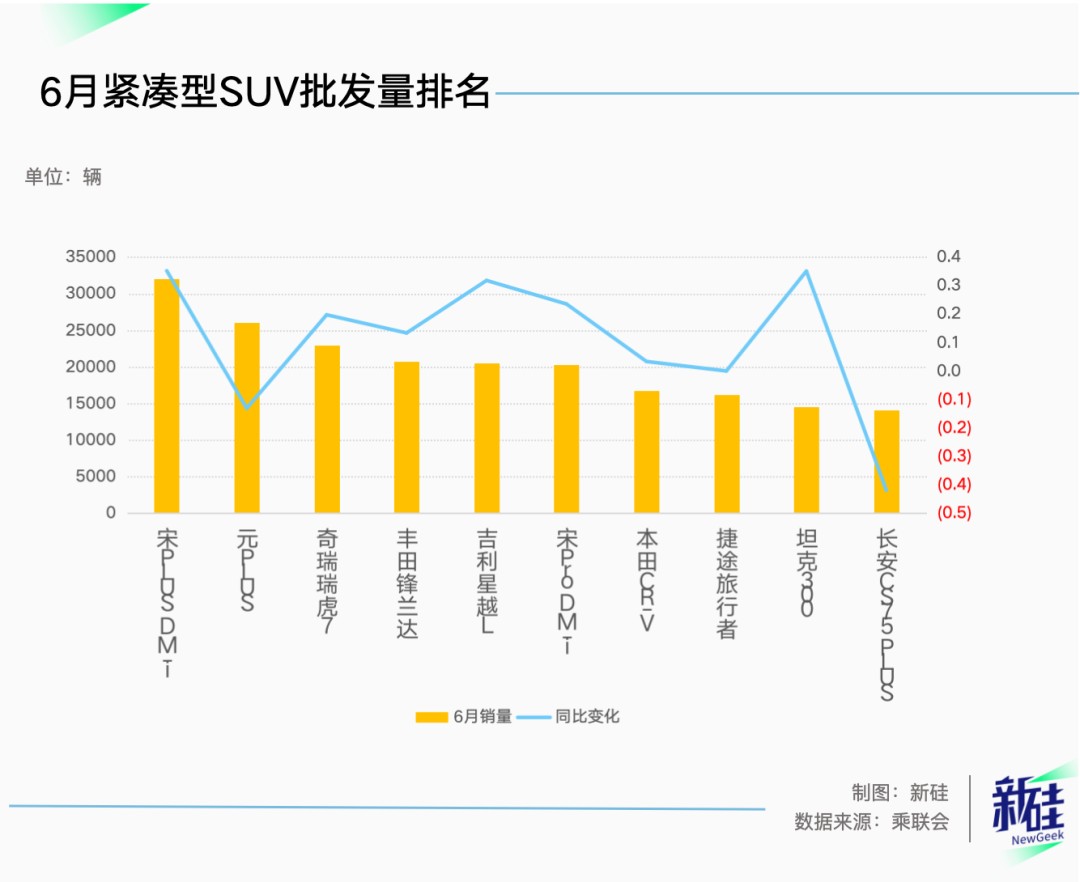 In June, the CR-V sold more than 16,000 units, ranking behind the BYD Song Pro DM-i. Here we are talking about the compact SUV market. If we ignore size, the Model Y, which sold over 40,000 units per month, is truly deserving of the first place.
