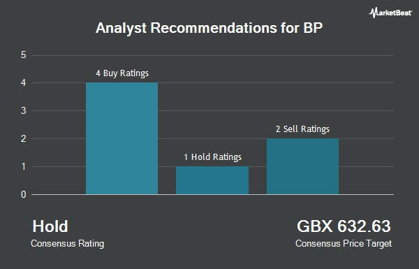 BP has been the subject of a number of other reports. Bank of America reiterated a "neutral" rating and issued a GBX 500 ($6.43) price target on shares of BP in a research note on Monday, April 22nd. Morgan Stanley reiterated an "overweight" rating on shares of BP in a research note on Tuesday, May 14th. Berenberg Bank reiterated a "hold" rating and issued a GBX 510 ($6.56) price target on shares of BP in a research note on Tuesday, July 9th. Royal Bank of Canada reissued an "outperform" rating and issued a GBX 650 ($8.36) price objective on shares of BP in a report on Tuesday, June 18th. Finally, Barclays reissued an "overweight" rating and issued a GBX 1,000 ($12.86) price objective on shares of BP in a report on Monday, April 8th. Two investment analysts have rated the stock with a sell rating, two have assigned a hold rating and four have given a buy rating to the company's stock. Based on data from MarketBeat, BP currently has a consensus rating of "Hold" and a consensus price target of GBX 632.14 ($8.13).