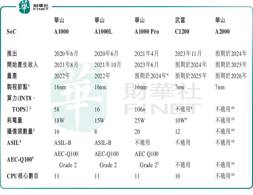 繼去年 4 月發佈行業內首個集成自動駕駛、智能座艙、車身控制及其他計算域的武當系列跨域 SoC 後,針對 L3 及以上,公司正在開發設計算力達 250+TOPS 的華山 A2000,這是世界上性能最高的車規級 SoC 之一,預計於今年推向市場,公司產品矩陣愈發豐富。
