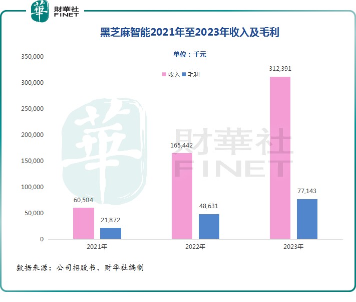 亮眼的經營數據亦推動公司收入節節攀升。2021 年至 2023 年,公司總收入由 6050 萬元激增至 3.12 億元,複合年增長率高達 127%;公司毛利也由 2187 萬元增長至 7714 萬元。
