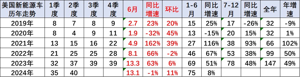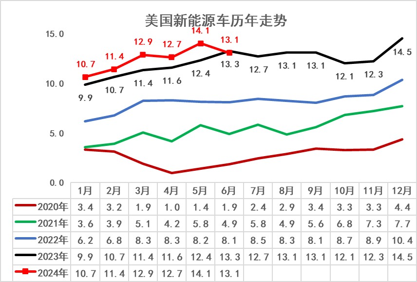 In the first half of this year, U.S. new energy vehicle sales of 0.75 million units grew at a slower rate of 8%, with negative growth in June. Mainstream consumers still have significant concerns about charging infrastructure, battery life, and insurance costs, leading to high inventory pressure and clear complaints from dealers.
